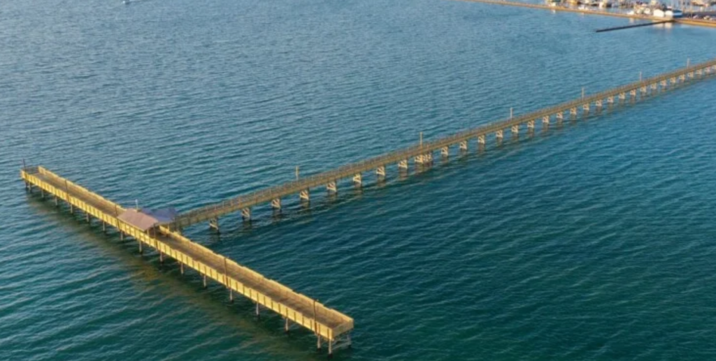 Goose Island State Park Fishing Pier, a 1,620-foot-long bridge located north of Rockport in Aransas County, is a privately owned…